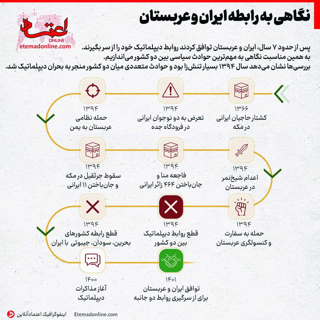 جمهوری اسلامی ایران و عربستان سعودی روز جمعه 19 اسفند برای از سرگیری روابط دو جانبه و بازگشایی سفارتها به توافق رسیدند. این مساله را میتوان در ادامه خواست و اراده جمهوری اسلامی ایران برای عادیسازی روابط با همسایگان ارزیابی کرد. در سالیان اخیر و به ویژه در یکسالونیم گذشته چندین دور مذاکره میان تهران و ریاض برگزار شد و برخی عوامل نظیر تغییر وضعیت عربستان سعودی و توجه به شرق نقش شتابدهنده را برای به نتیجه رسیدن مذاکرات ایفا کردند.